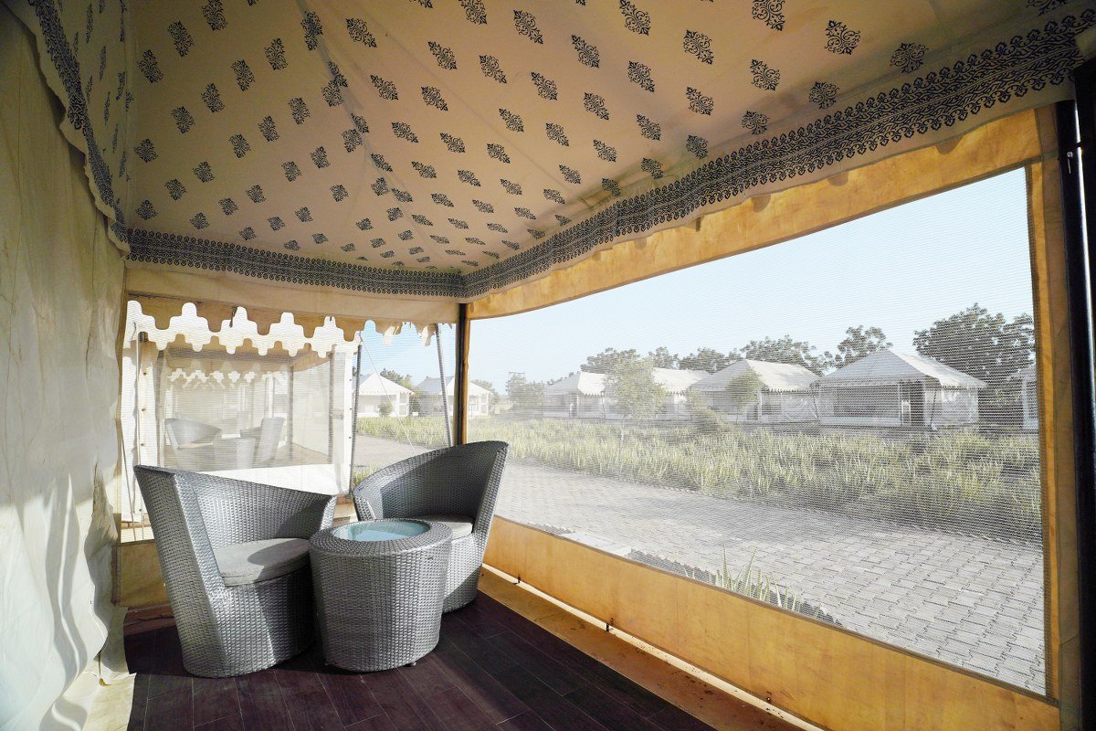 Private sit-out area with views of the golden Thar Desert