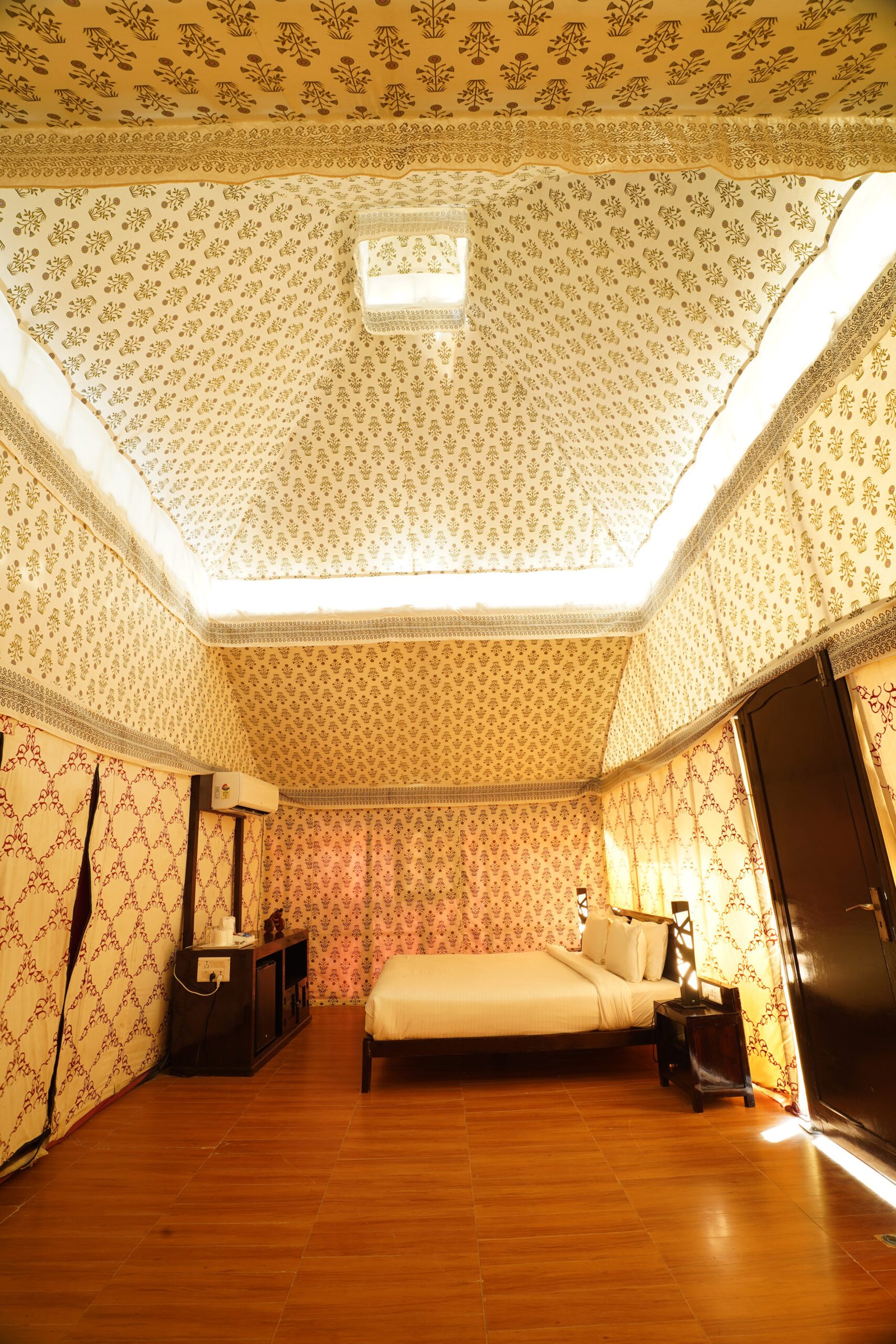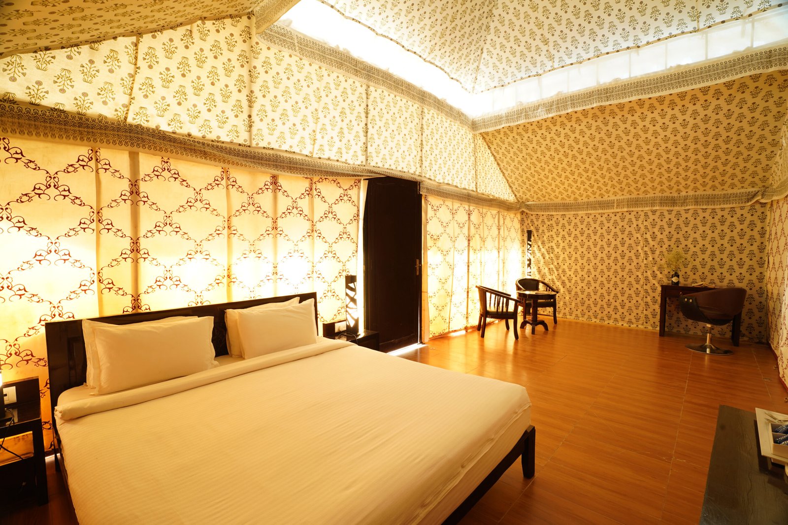 The Royal Tent in Jaisalmer is more than just accommodation – it is an experience crafted with elegance and comfort. Spacious interiors, handcrafted Rajasthani décor, and refined furnishings create an atmosphere of sophistication. From the traditional lamps to the intricate designs on the fabrics, every corner reflects the essence of Rajasthan’s royal heritage.